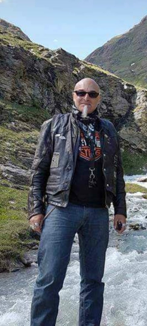 Barbichette, crâne rasé, tatoué et look bikeur !