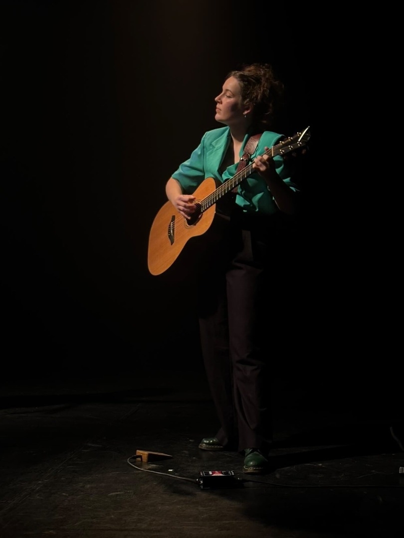 guitariste comédienne chanteuse dans ‘Irish Troubles” de Michèle Péruisset, un spectacle concert qui raconte l’histoire de l’Irlande et aborde les sujets de la colonisation et de l’identité.