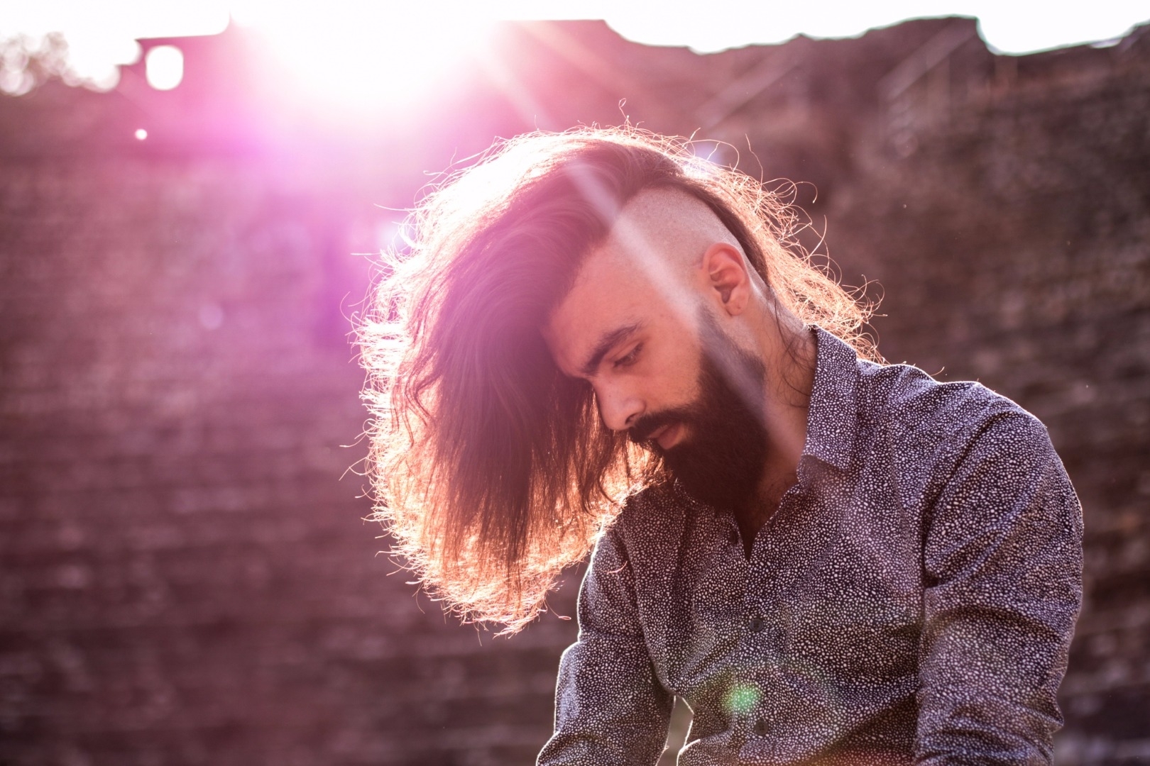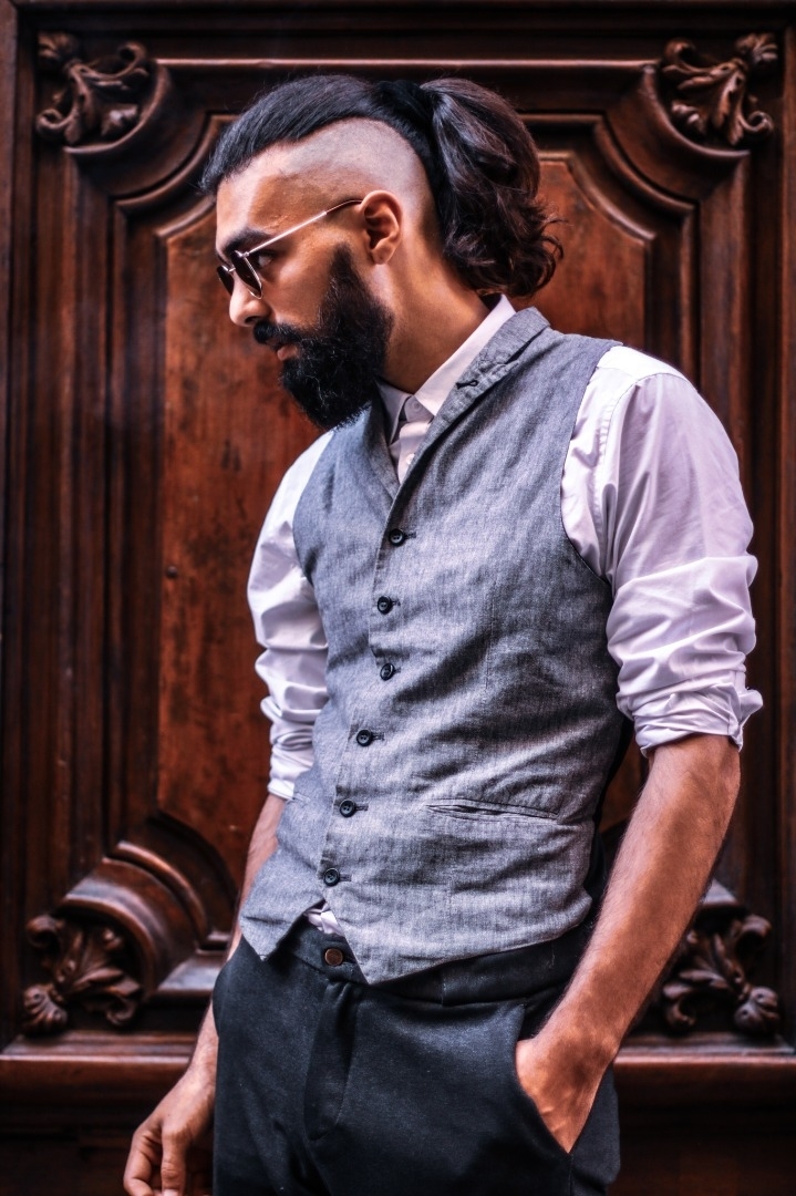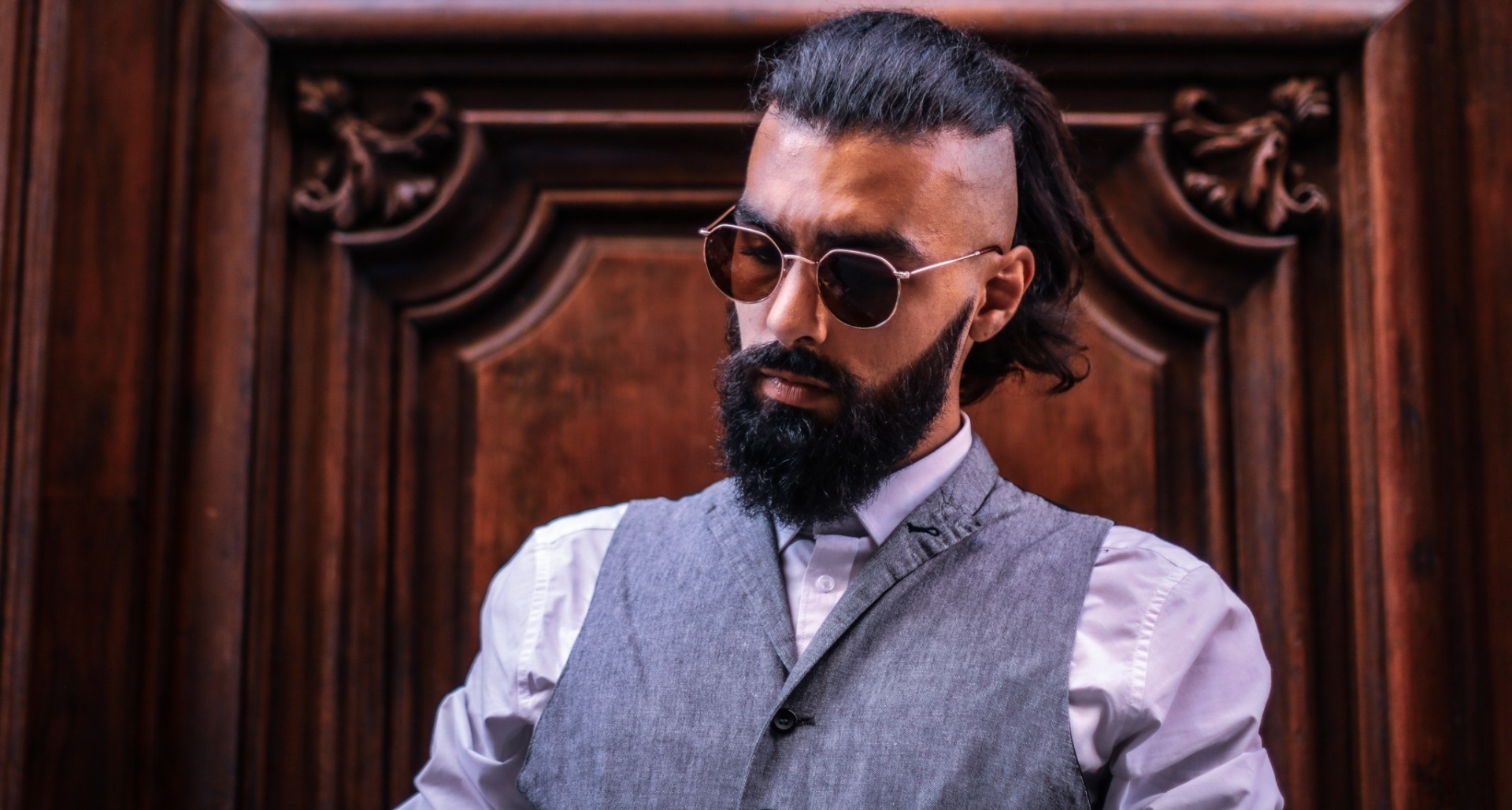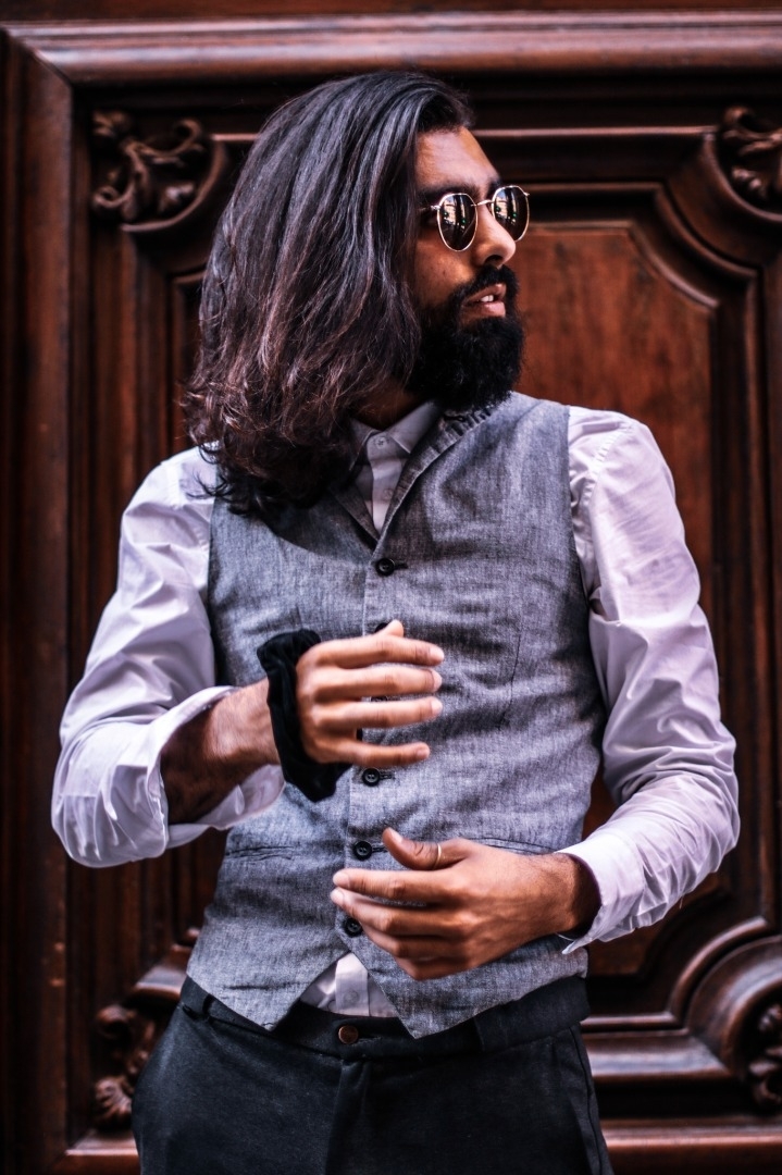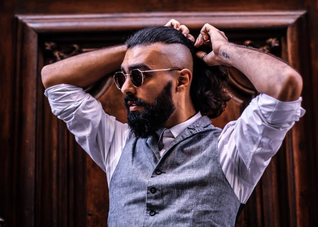 Coiffure spéciale, longue barbe.