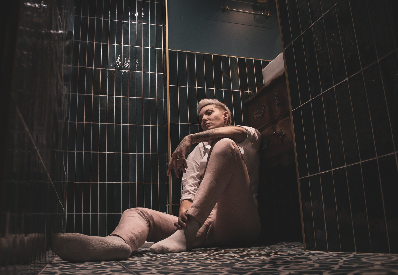 Profil androgyne, à l’aise face à la caméra.