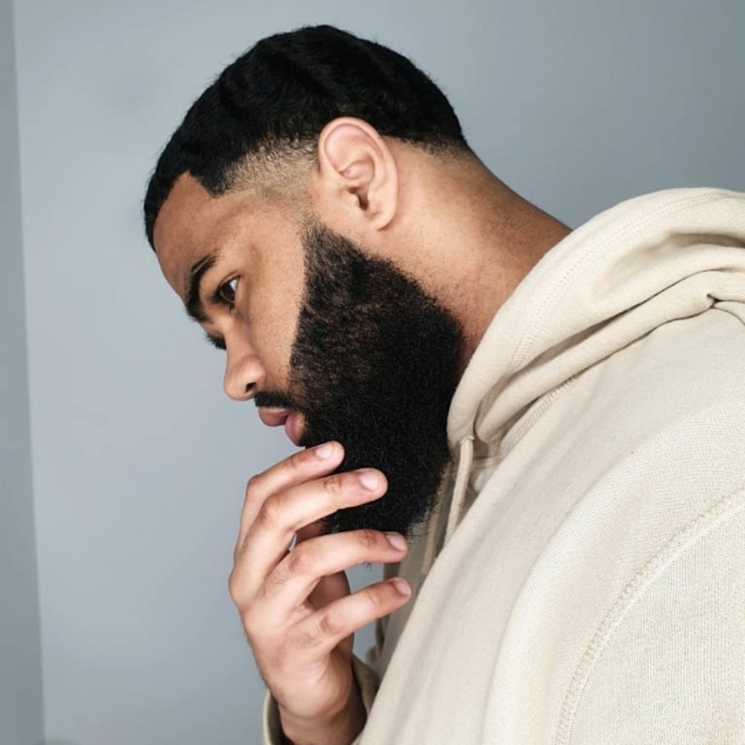 Je porte une barbe, et ma marque de fabrique est les "waves" ( coiffure qui forme des ondulations, des vagues sur la tête)