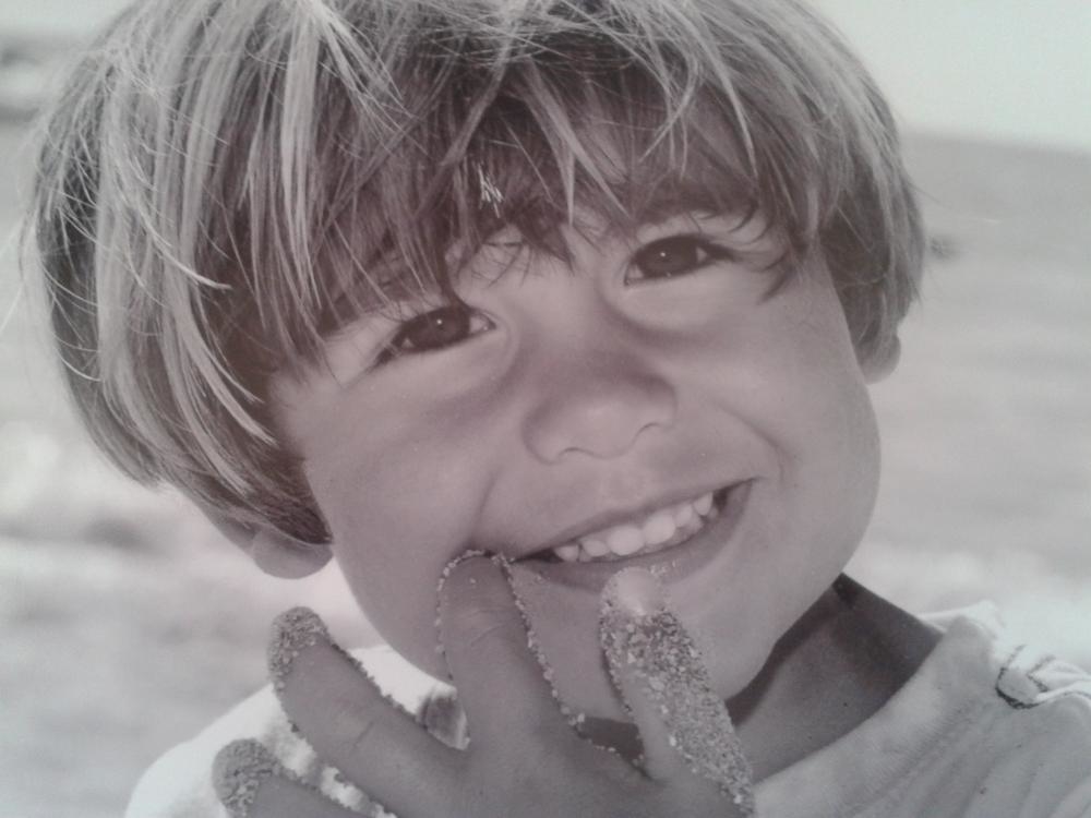 enfant très souriant et agréable,cheveux certain clair avec des pêches blondes naturelles et une coupe boule.