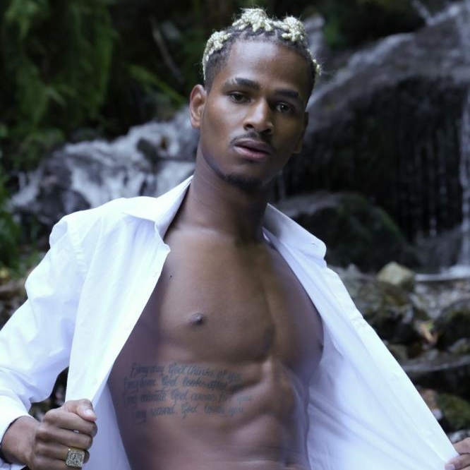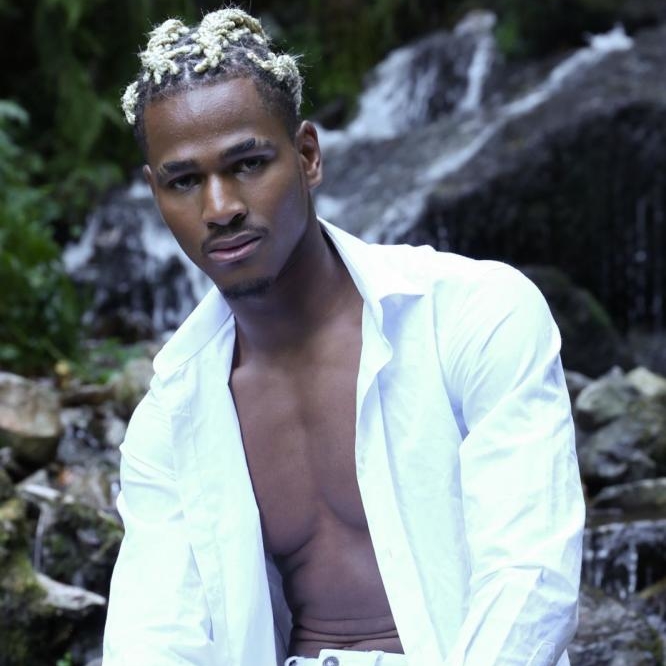 Grand de taille, musclé, modèle sportif, cheveux afro blond tressé, métisse