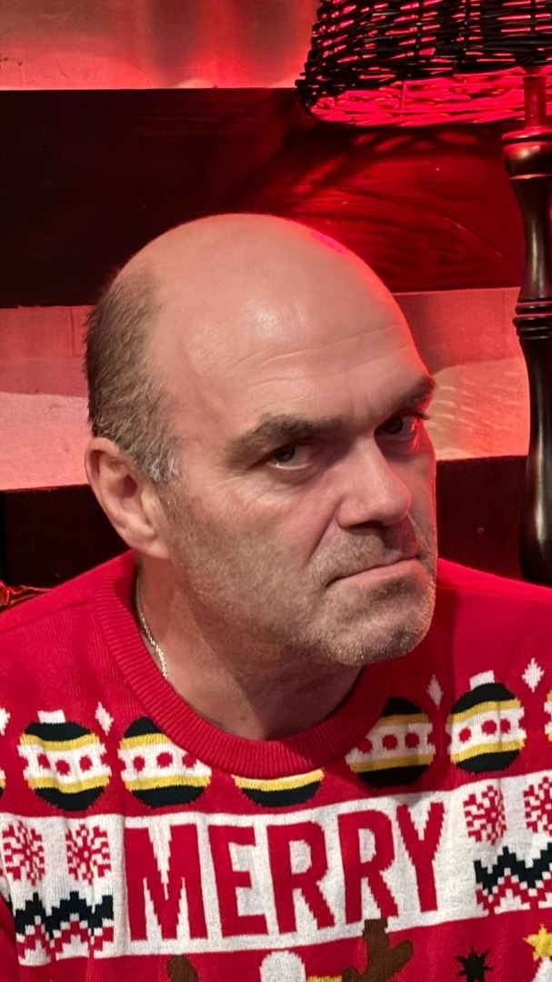 Faussetés au menton, dégarnie, ancien rugbymen,