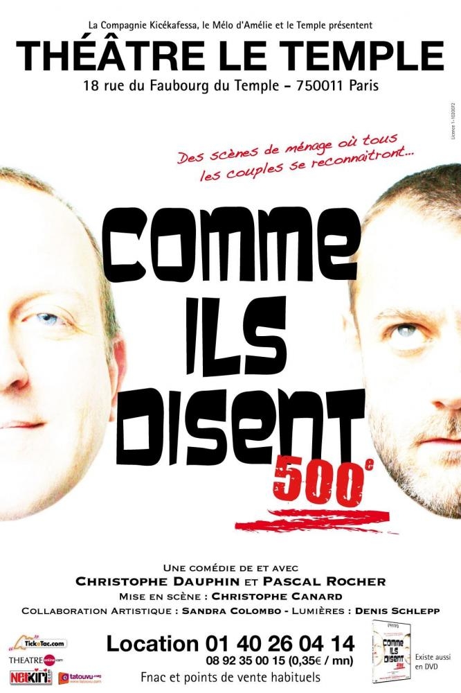 Dans le cadre du spectacle au théâtre du temple « Comme ils disent », Casting.fr vous offre des places.