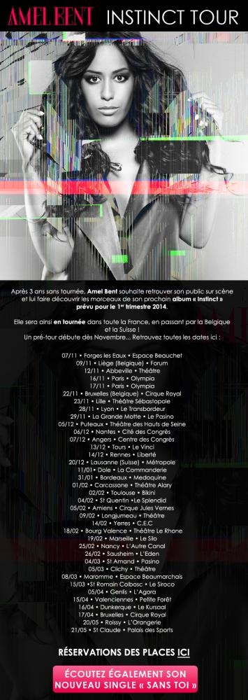 Alors que sa tournée "Instinct Tour" est en cours, Amel Bent nous dévoile le clip de son nouveau single “Sans toi”. Vous pourrez la retrouver dans son nouvel album qui sortira en 2014.