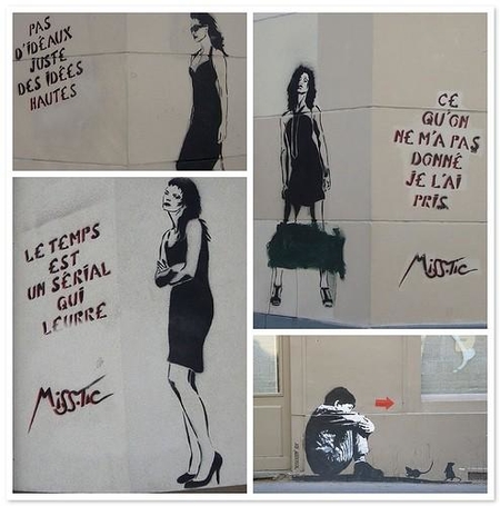 Depuis des années Miss Tic bombe les murs de Paris de ses pochoirs subtils et ambigus. Et depuis tout ce temps, les propriétaires de ces mêmes murs les effacent. Police, procès, condamnation...