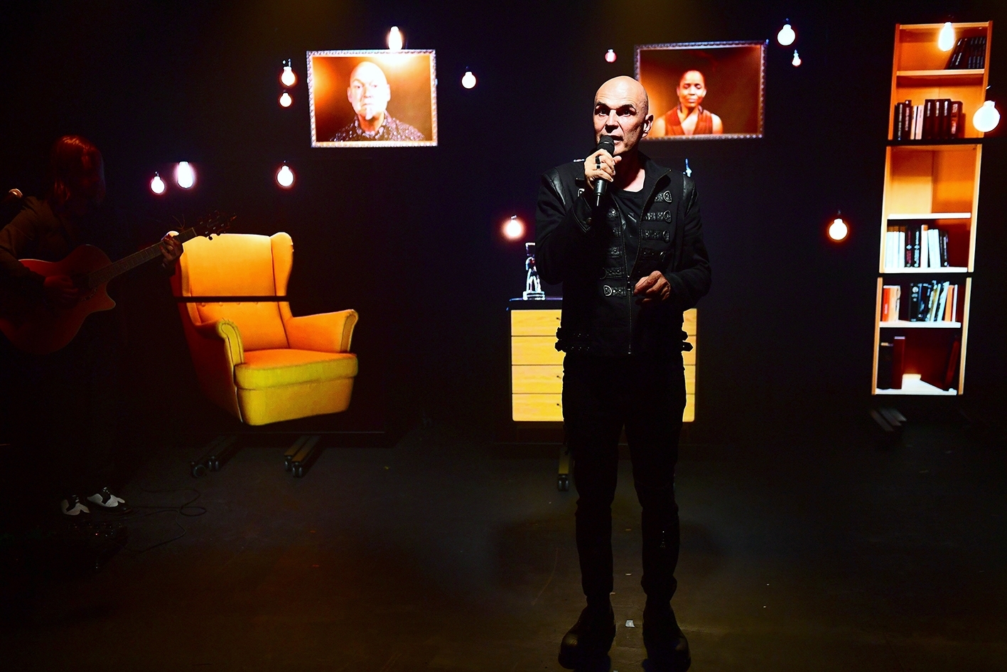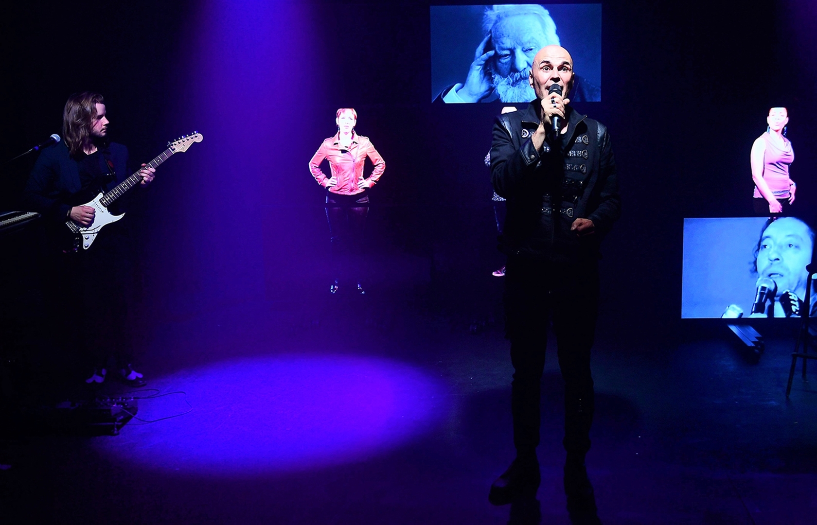 Seulement, ne vous y trompez pas, il n’est pas question de supprimer les avancées de ce monde et cela l’artiste nous le fait comprendre en composant son spectacle de multiples écrans vidéos.