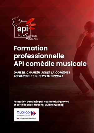 Créée par la comédienne, chanteuse et chorégraphe Nathalie Lefèvre, API comédie musicale propose une formation professionnelle et certifiée pour se former à la comédie musicale. À l’issue de ces apprentissages, la chorégraphie chantée, le théâtre, le mime, les claquettes et toutes les autres disciplines n’auront plus aucun secret pour vous.