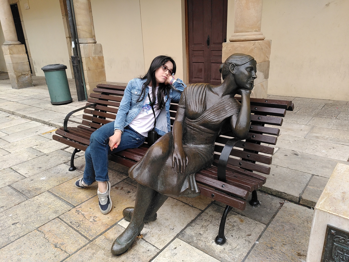 Peau très blanche avec quelques points de rousseur. Lunettes ou lentilles de contact. cheveux longs et foncés.
