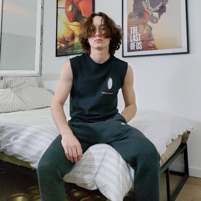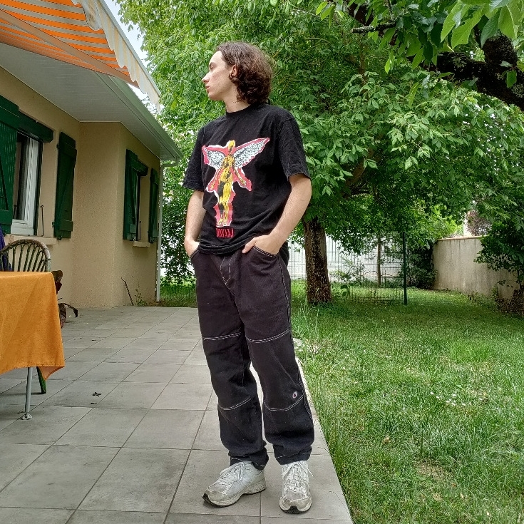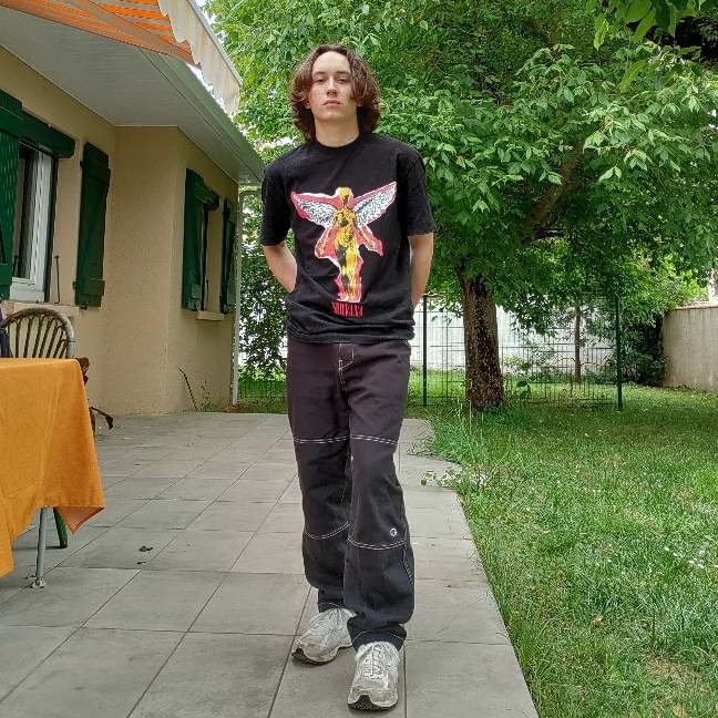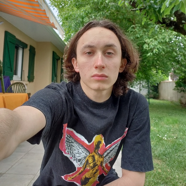 Cernes, corps taillé, grand front, cheveux longs