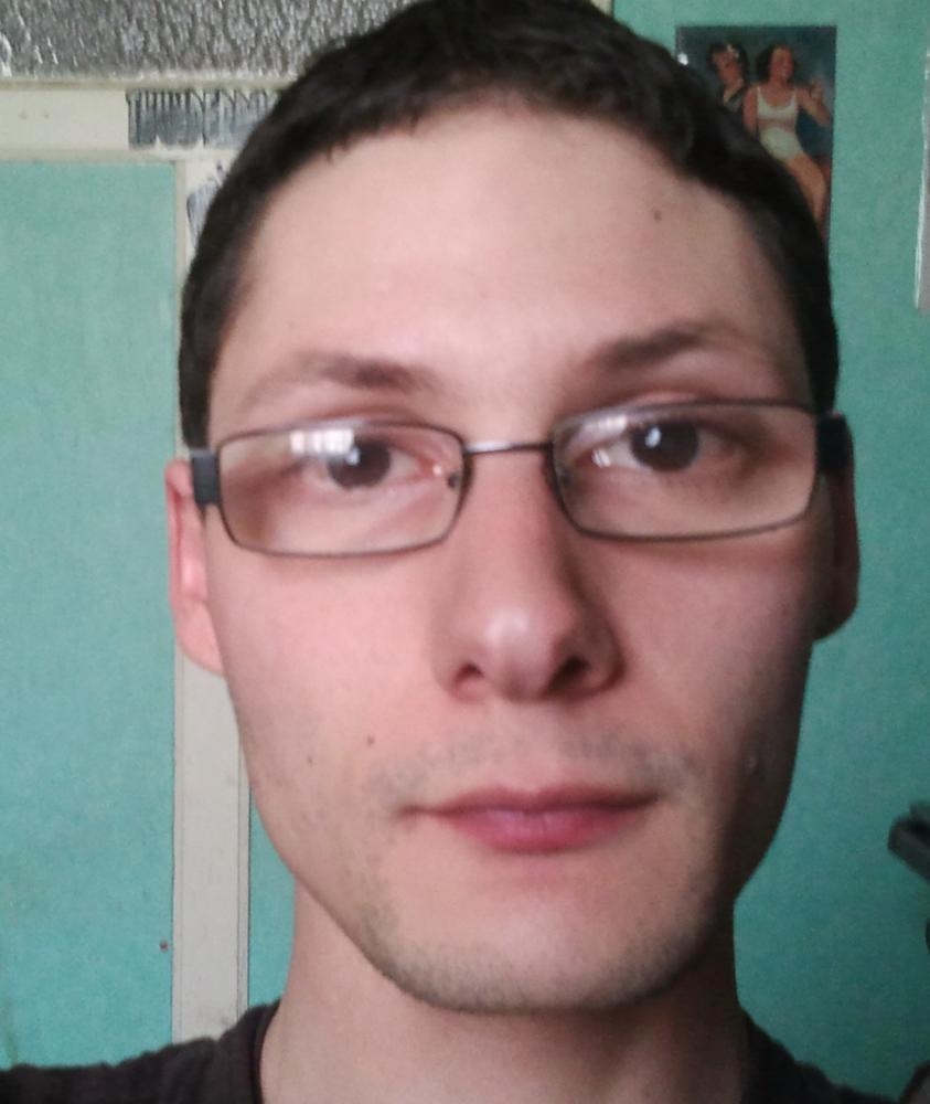 Assez mince,avec des lunettes