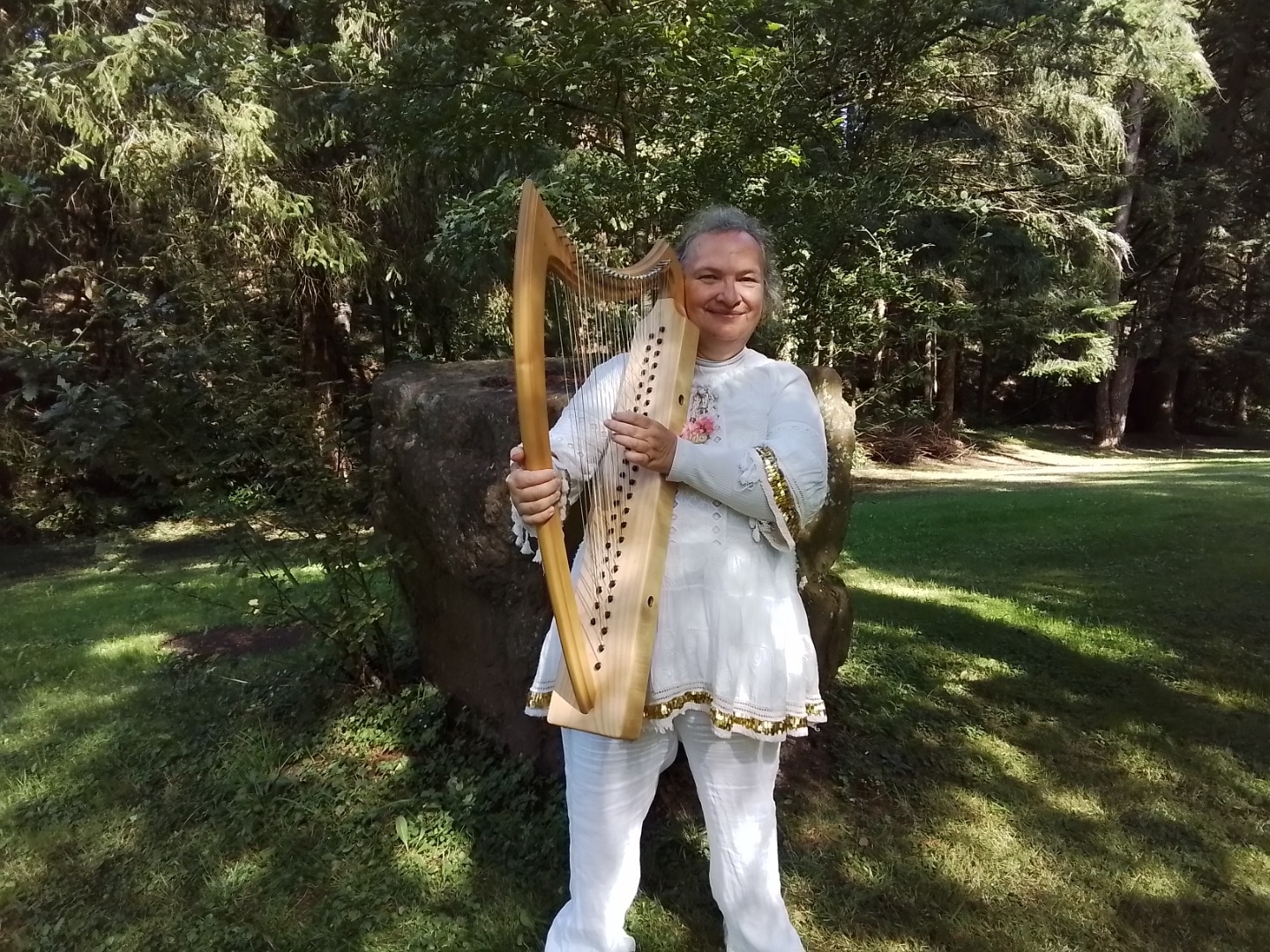 Je suis à la retraite mais comme elle est très réduite, je la complète par de petites actions qui me plaisent : cours de harpe, figuration, animations dans les écoles...